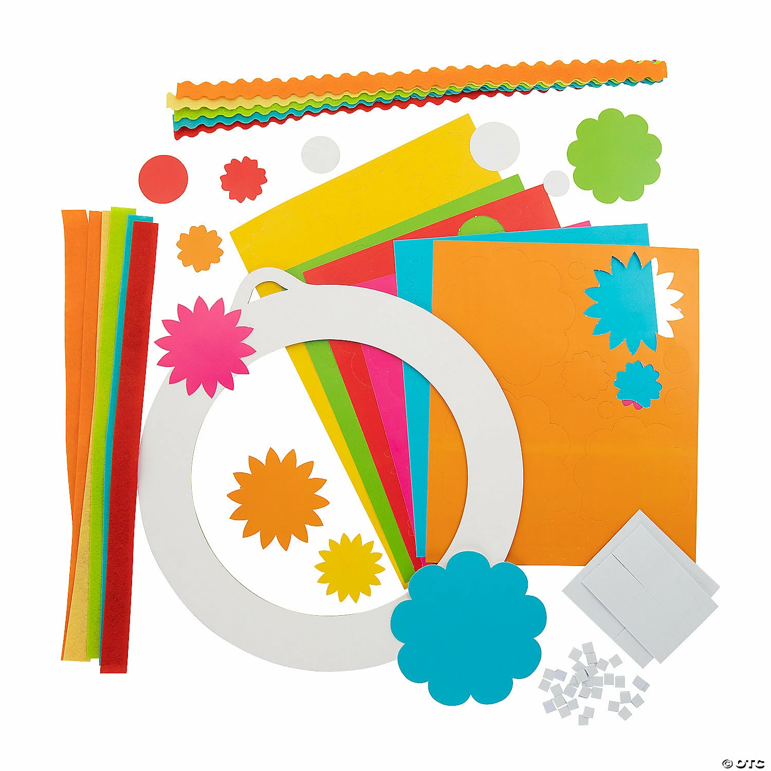 Create something colorful for your fiesta or Cinco de Mayo celebration using this fun wreath kit. This lovely wreath wonβt wilt or brown, but it will get you bragging rights for creating your very own impressive fiesta party decoration! This DIY wreath craft kit is fun to create and only requires the use of a glue gun (sold separately on this website) to complete using the included materials. Includes chipboard, cardstock, self-adhesive foam pieces and felt strips. 19 1/2″ x 35 3/4″ Makes 1. Kit includes instructions. Β© OTCFiesta Paper Flower Wreath Craft Kit Instructions